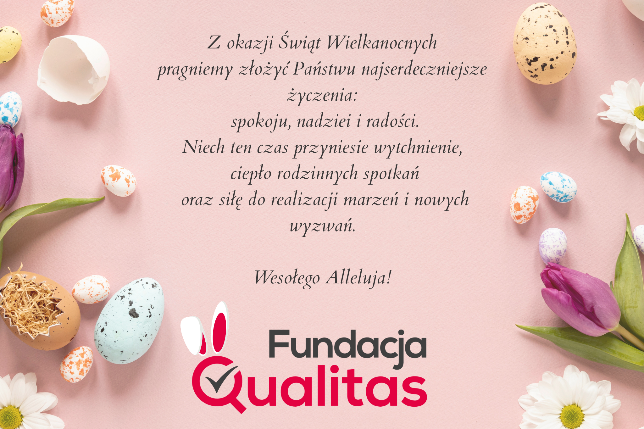 Wesołych Świąt Wielkanocnych17 kwietnia 2025Z okazji zbliżających się Świąt Wielkanocnych składamy najserdeczniejsze życzenia: dużo zdrowia, radości, smacznego jajka, mokrego dyngusa, mnóstwo wiosennego słońca oraz wielu sukcesów. ‹ Ogólnopolski Kongres Jakościowy pod Patronatem Fundacji Qualitas Ogólnopolski Kongres Jakościowy 2025: Wiedza. Relacje. Biznes. ›AktualnościPolska Nagroda Jakości X Ogólnopolski Kongres Jakościowy 27.11.2025Mirosław Recha – Pożegnanie 26.11.2025Z pasji do jakości. Warsztaty w MH w Chorzowie 01.10.2025Z pasji do jakości „Inspiruj się, buduj relacje, twórz przyszłość” 26.05.2025Ogólnopolski Kongres Jakościowy pod Patronatem Fundacji Qualitas 22.05.2025Wesołych Świąt Wielkanocnych 17.04.2025 Więcej
